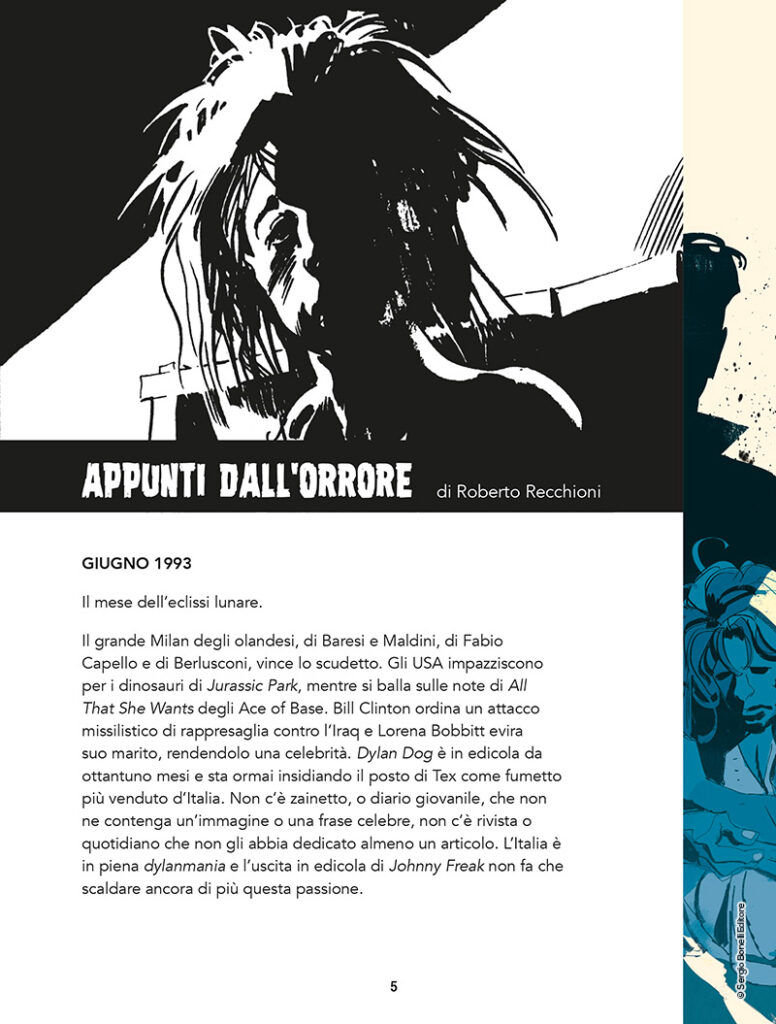 C'è una cantina sul fondo della notte, che ha le pareti illuminate da mille affreschi e dai colori della fantasia. È la casa di Johnny Freak, Johnny senza gambe, Johnny sordomuto e abbandonato al suo silenzio. Dylan Dog ha un nuovo amico e un nuovo dolore. Chi lo ha ridotto così? Dietro gli occhi del ragazzo, si legge un oceano di tenebra. Una storia di solitudine e orrore che nessuno ha mai raccontato…