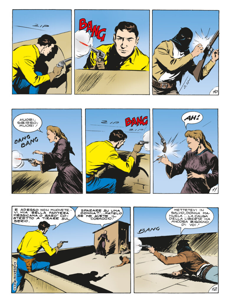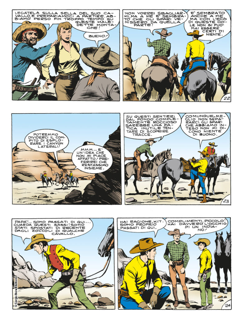 Manuela Guzman sfugge all’assedio che le Giacche Azzurre, accompagnate da Tex e i suoi, avevano stretto alla sua hacienda. La partita non è chiusa, dunque, ma Willer, Carson e il giovane Kit non si danno per vinti. Le tracce di Donna Manuela portano dapprima fino al Rio Grande, per poi proseguire verso l’inospitale deserto in cui si annida la banda di El Lobo!...