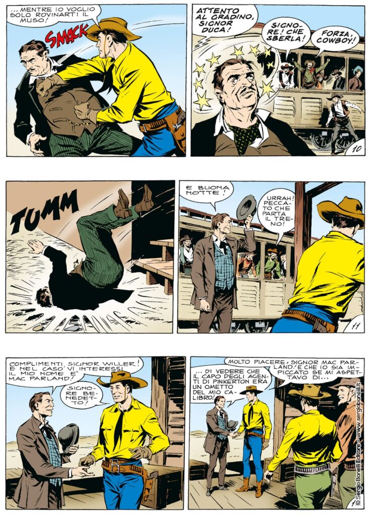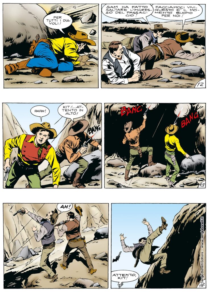 Al termine di un lungo inseguimento e di un mortale scontro all’interno di un infernale canyon, Tex e i suoi pards riescono a catturare Jim Burrows, un pericoloso rapinatore di treni che con il fratello Ruben aveva appena messo a segno un colpo da venticinquemila dollari ai danni di un treno portavalori. Dopo averlo consegnato allo sceriffo, i nostri seguono le tracce del fratello sfuggito alla giustizia che, nel frattempo, si è alleato con il bandito Sam Culver. Le loro scorribande non dureranno a lungo. Distrutta la criminale masnada, Tex e i suoi amici proseguono con lo sceriffo e gli altri sino alla cittadina di Cederville. La presenza in paese dei ranger mette però in allarme un misterioso figuro con quattro dita che, conscio del pericolo che Tex può costituire per i suoi loschi affari organizza un vile attentato nel quale Carson viene ferito…