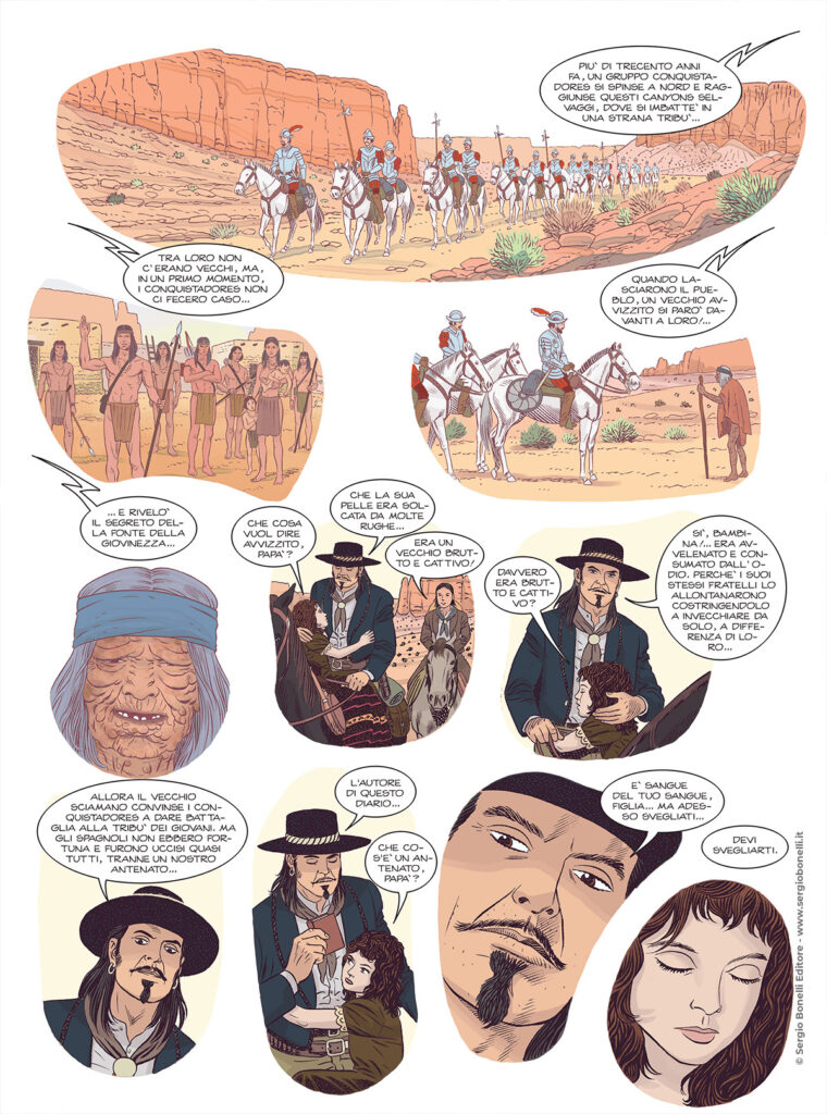 Continua lo shoppingNei canyons tra i territori hopi e navajo, una coppia di giovani amanti sogna di scovare l’accesso nascosto alla fonte della giovinezza... Tra tagliagole in cerca di tesori e feroci nativi guidati da un misterioso personaggio mascherato, Tex e i suoi pards corrono in aiuto di Nakai, un prode guerriero che già in passato aveva affrontato gli ancestrali segreti degli Anasazi!