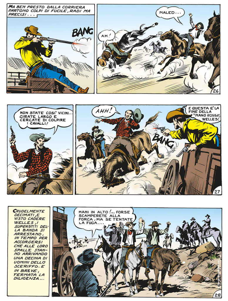 In punto di morte, Joe Scott ha rivelato i nomi dei rapinatori della banda che si firma “La Mano Rossa”. Dopo che Tex, intenzionato a liberarsi di un’ingiusta accusa di omicidio, ha sfoltito i componenti della gang, ai sopravvissuti Topler e Welles non rimane che reclutare altri malviventi: formata la “Nuova Mano Rossa”, tornano a seminare terrore in tutto il Texas!