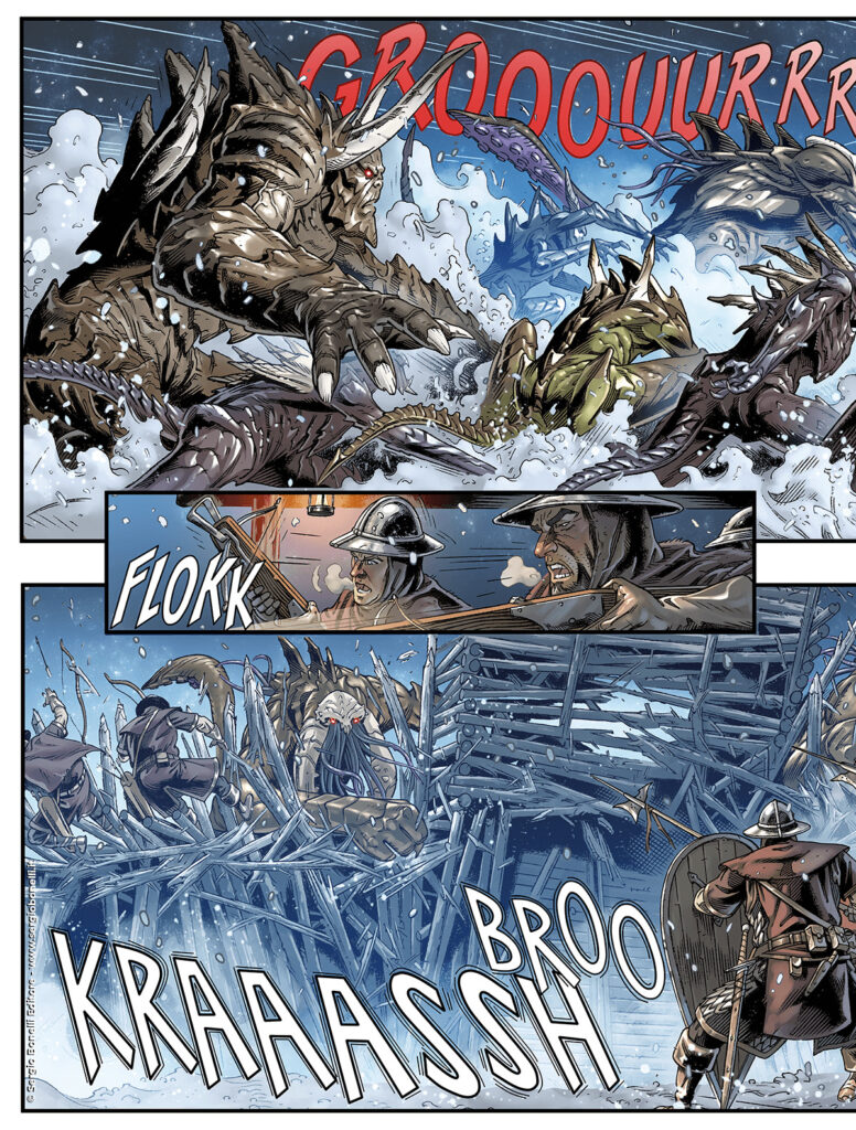 Continua lo shoppingIl drago Slaemur, il “dormiente” nascosto fra le montagne innevate dell’Enclave dei Figli di Olhim, è sempre più schiavo del muschio ramato, che gli dona sollievo e pace, ma, allo stesso tempo, gli ottenebra la mente e gli ruba il raziocino. In preda alla follia, il dreago massacra indistintamente amici e nemici… per questa ragione Ian Aranill deve avvicinarlo, per cercare di farlo ragionare e portarlo dalla propria parte nella lotta contro gli Abominiii, ma dovrà farlo prima che l’Alfiere che ha invaso l’Enclave uccida Slaemur, liberandosi così di un potenziale pericolo!
