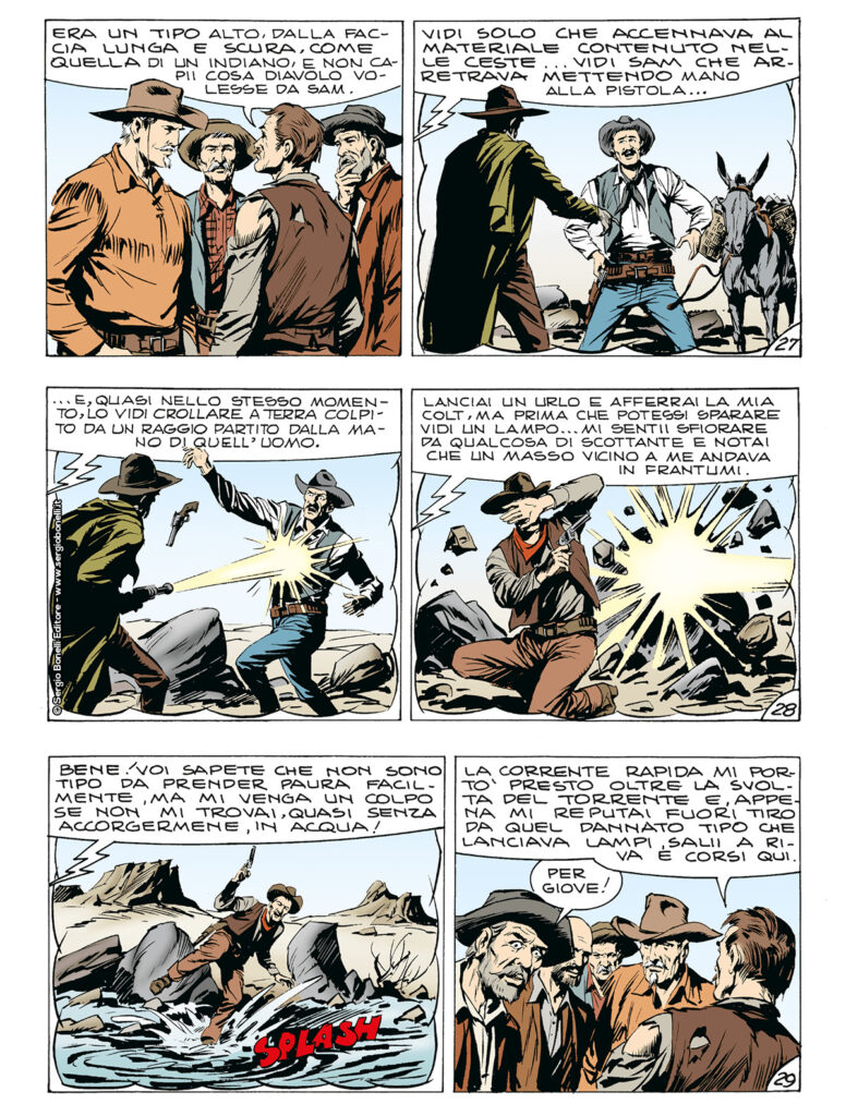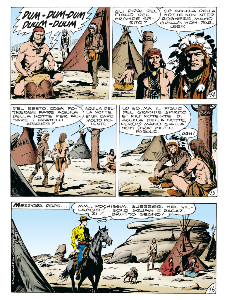 Continua lo shoppingNella Valle della Luna, Ben Rufus, amico di Tex, ha appena acquistato una miniera che tutti ritengono maledetta… una strana creatura si aggira seminando morte con la sua pistola lancia raggi, mentre giovani Apache, conquistati dalla sua potente acqua di fuoco, lasciano i villaggi per lavorare per lei!