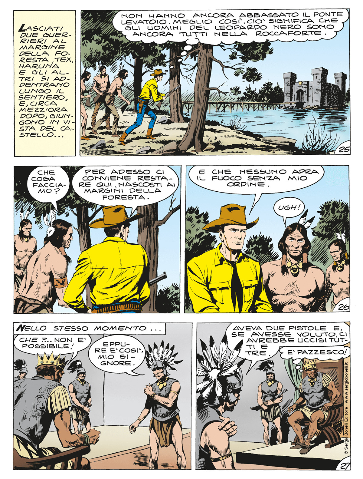 Continua lo shoppingTex penetra nella fortezza del Leopardo Nero, ma la sua incursione viene scoperta troppo presto e Kit, nel tentativo di aiutarlo a fuggire, viene catturato. Il perfido Grande Re intende sfruttare quanto accaduto per sconfiggere Aquila della Notte, il quale riunisce a sé un esercito indiano, con il quale assaltare il castello. Nel frattempo, Piccolo Falco, ricevute le armi dal padre, è pronto a dar battaglia per la sua libertà!