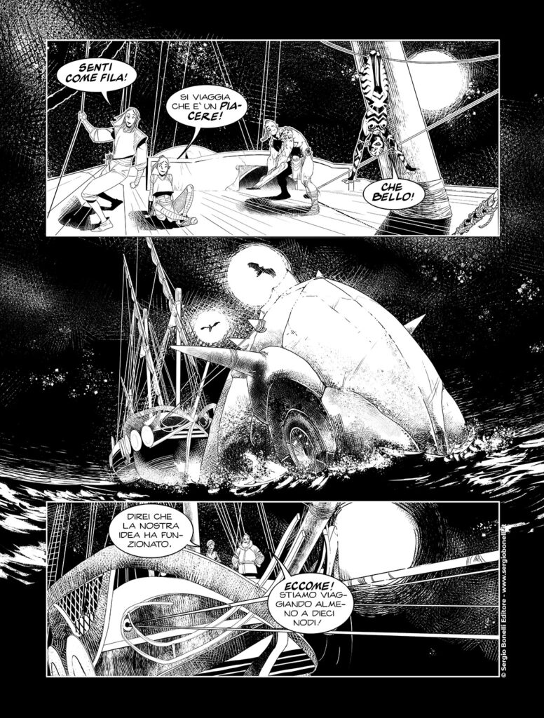 Continua lo shoppingUn’altra tappa del misterioso viaggio per mare dell’ottantenne Ian insieme alla sua ciurma di “nipotini”: i fratelli elfi Letmhòr e Letbigh, la strige Cáindhèn, la selvaggia arpia Kènkèn, il piroforo Ateshli, il possente semitroll Kreag, la maga M’chawi e infine Mirāj, la misteriosa “parvenza”.