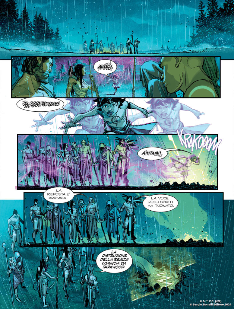 Continua lo shoppingLa tribù Mohawk del giovane Kohana viene sterminata da un potente essere in grado di imbrigliare l’energia e la forza dei fulmini… a ordire il brutale assassinio, due sinistre figure in cerca di vendetta nei confronti dei loro arcinemici. Sarà un inequivocabile messaggio, inciso sul petto del povero Kohana, a far sì che l’eroe di Central City, Flash, attraversi mondi e realtà per giungere nella foresta di Darkwood, pronto a unire le sue forze con quelle dello Spirito con la Scure: Zagor!