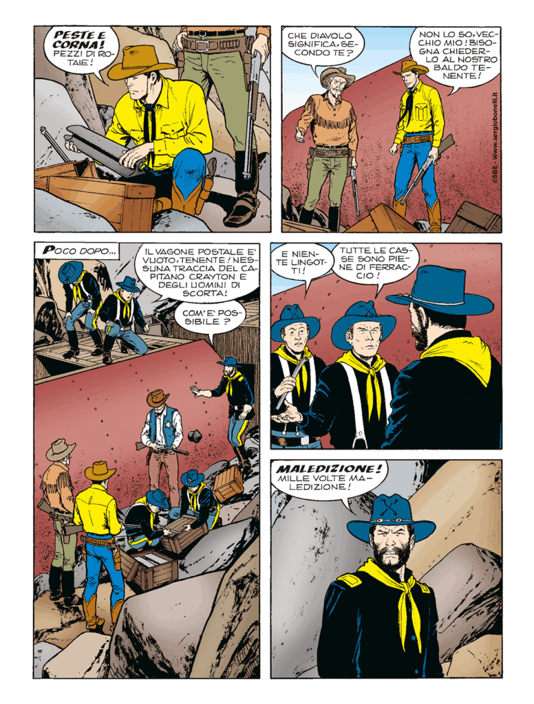 Dopo l’intervento della tribù di Grande Pioggia, Tex e Carson riescono a raggiungere e fermare definitivamente il capo del micidiale squadrone diretto in Messico!