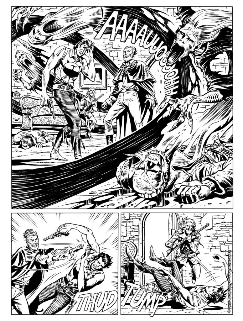 Zagor scopre il maniero in cui l’Araldo di Cromm ha il suo covo, e dove prepara i suoi piani di riscossa. Penetrato all’interno, dopo aver affrontato gli adepti della setta, viene però fatto prigioniero e torturato. Dalla viva voce dello stesso Araldo scopre l’incredibile verità circa il motivo per cui i Servi di Cromm lo volevano catturare vivo. Sottoponendolo a un rito come vittima sacrificale destinata al dissanguamento, gli irlandesi sono convinti di poter finalmente accedere ai poteri magici dei druidi, di cui finora avevano scoperto soltanto pochi sortilegi, con i quali mettere in atto il loro proposito di ricreare l’antica civiltà celtica non solo in Irlanda ma anche in America. Nulla sembra impossibile a chi possiede la magia. La promessa di donare grandi poteri alla setta in cambio di un sacrificio umano viene fatta da una entità sovrumana che Zagor già conosce… e che ha stretto sodalizio con i Servi di Cromm!