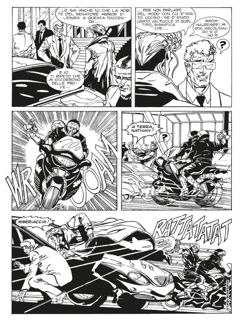 L'investigatore privato Marvin Hopkins, incaricato dalla conturbante Frances Woods di recuperare delle foto compromettenti dalla testa di un ricordante morto, viene arrestato da Nathan Never. Nella testa ci sono brevetti rubati e la Woods è stata trovata morta: un diario indica Hopkins come il probabile assassino. Hopkins protesta la propria innocenza e Nathan sospetta che qualcuno voglia incastrare l'uomo: nel caso sembrano coinvolti il senatore Mirror e lo yakuza Yoshi, oltre al gigantesco amico di Marvin, Fat Moon...