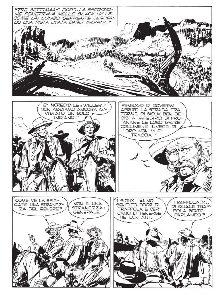 Continua lo shoppingLe maglie del complotto contro Custer si stringono sempre di più, e soltanto la prontezza di Tex e Carson impedisce a chi voleva uccidere l'orgoglioso ufficiale di condurre in porto il suo piano criminoso. Ma un nuovo pericolo si affaccia all'orizzonte, per minacciare stavolta la sopravvivenza non già di un solo uomo, bensì di un intero popolo: è l'oro che abbonda sulle Black Hills, eccitando la cupidigia di quanti vorrebbero strappare le Colline Sacre ai Sioux…