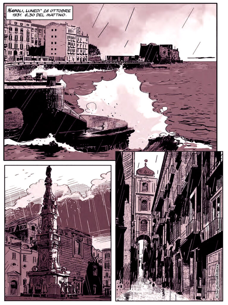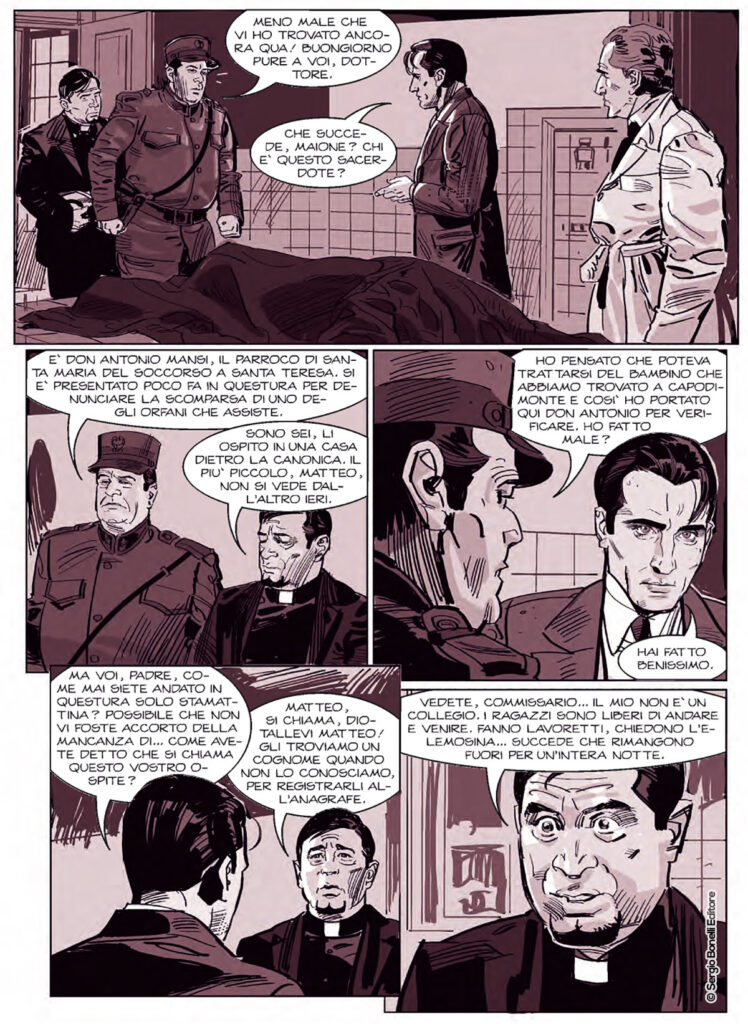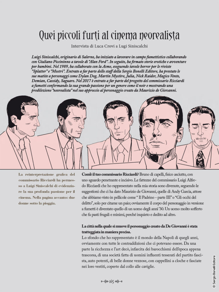 Sceneggiato dall'équipe che ha curato l'intero progetto di trasformazione a fumetti del commissario Ricciardi, Il giorno dei morti è disegnato da Luigi Siniscalchi, abile narratore dei chiaroscuri, spesso al servizio di Dylan Dog.