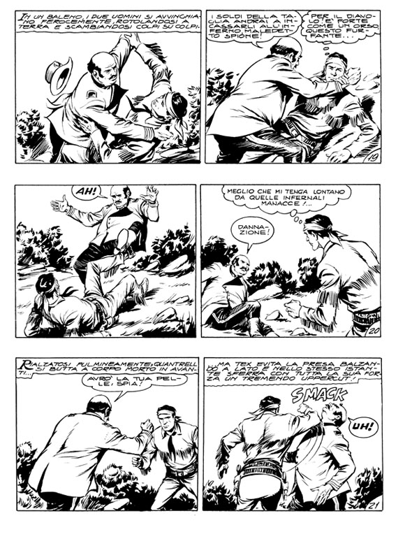 Continua lo shoppingTex convince Corvo Giallo, capo dei Piutes, a seppellire l'ascia di guerra e a distruggere i fucili avuti illegalmente da Andy Holt (un ceffo che nasconde un'identità segreta) in cambio del bestiame predato a Jim Elmer. Le armi arrivano dal sedicente generale Quantrell, che le ruba agli eserciti in lotta nella Guerra Civile per rifilarle ai Piutes, ai Corvi e agli Shoshoni: raggiunto dai Rangers, il vile tenta la fuga ma cade da cavallo rompendosi il collo! Mesi dopo, i pards soccorrono un hopi legato sul dorso di un bisonte in carica: il bestione è ornato con un enigmatico feticcio…