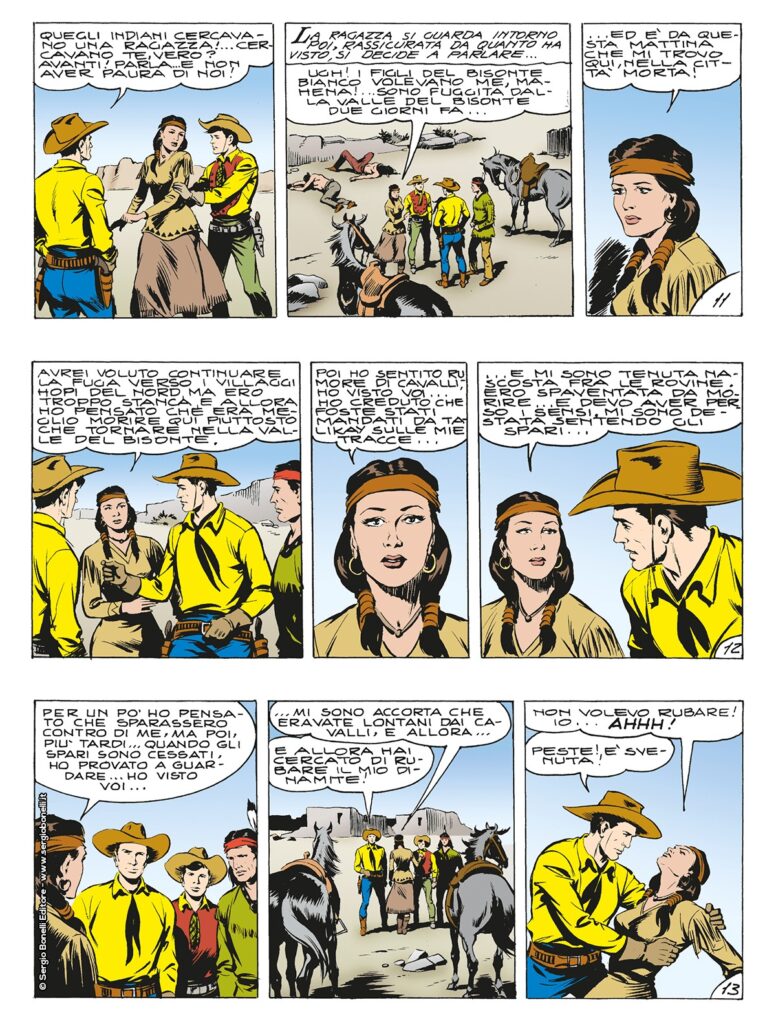 Braccati dal vendicativo Tahzay, figlio di Talikay, il vecchio sacerdote del sanguinario culto del bisonte bianco sconfitto da Aquila della Notte, Tex, Tiger e tre cercatori d’oro salvati dal palo del supplizio, trovano rifugio fra delle vecchie rovine al centro delle quali sorge un edificio a forma di tigre di pietra. Qui i nostri finiscono assediati dagli agguerriti indiani decisi di non darsi tregua sino a quando non avranno lo scalpo dei pards. E mentre fuori infuria la battaglia, uno strisciante pericolo si muove all’interno del tempio, mietendo vittime tra gli assediati che, uno dopo l’altro, scompaiono nel nulla…