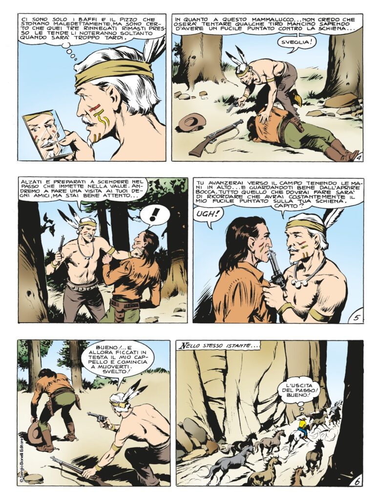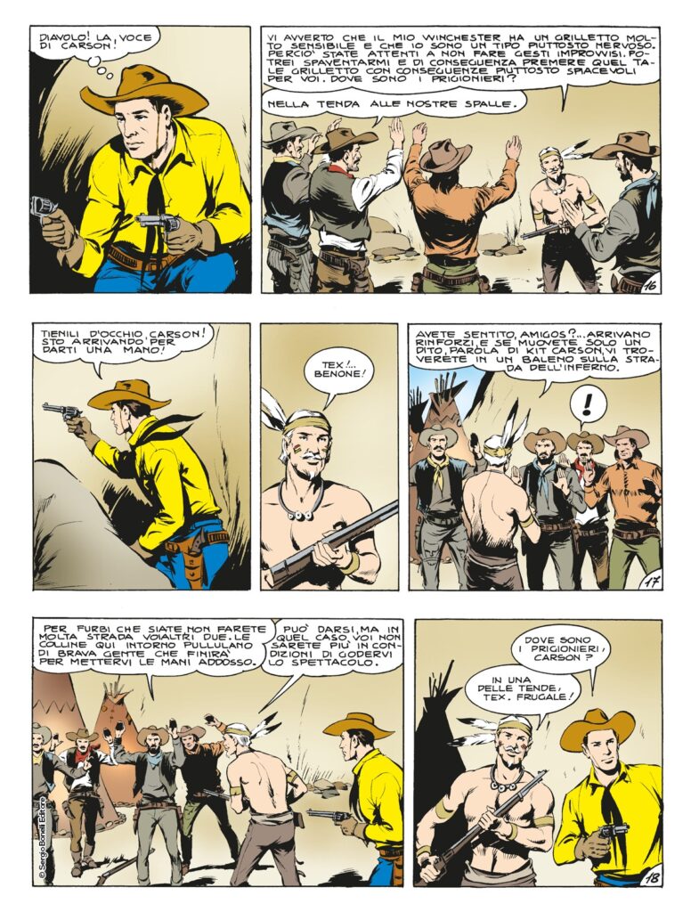 Dopo aver scoperto che l’orribile massacro, creduto opera degli Apaches, nasconde un complotto di cui fanno parte anche potenti uomini bianchi, Tex, Carson e il giovane Kit Willer, si gettano al salvataggio delle tre giovani donne uniche superstite dell’attacco. Nonostante la dura spolverata di piombo, la masnada di serpi assassine non si da pace e si getta a caccia dei fuggiaschi. Per i tre pards uscirne con la buccia intera non sarà impresa da poco…