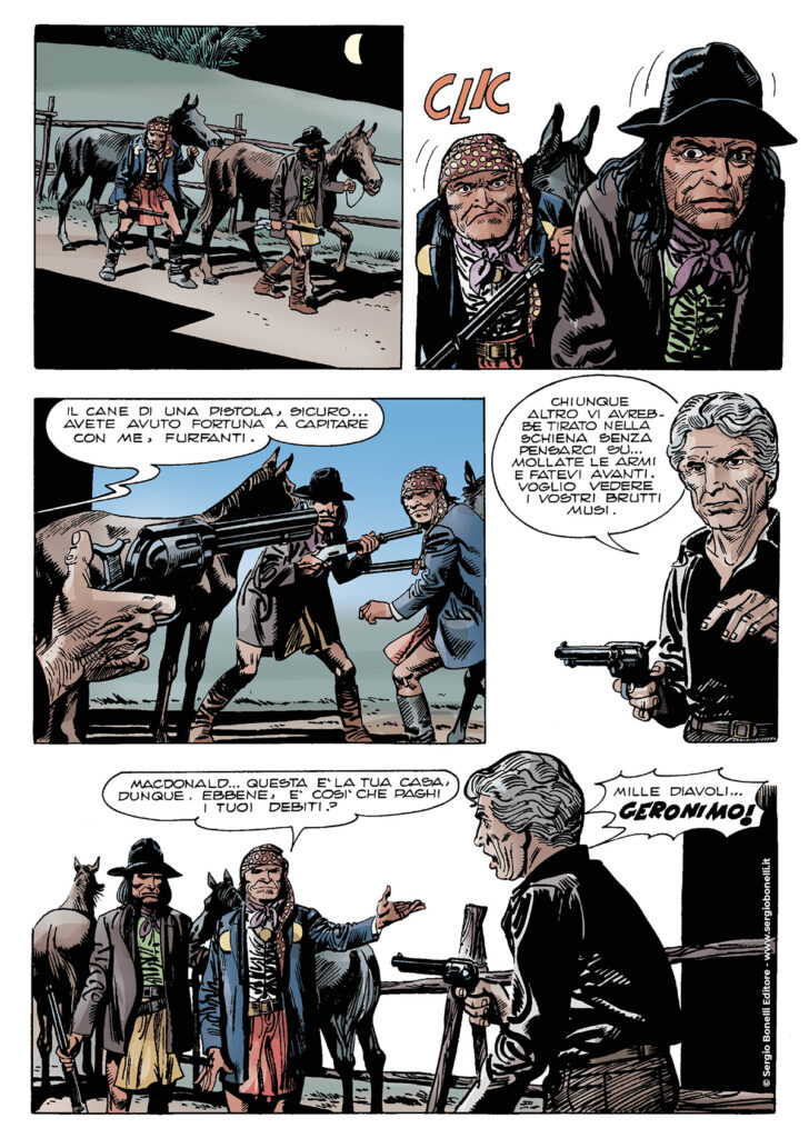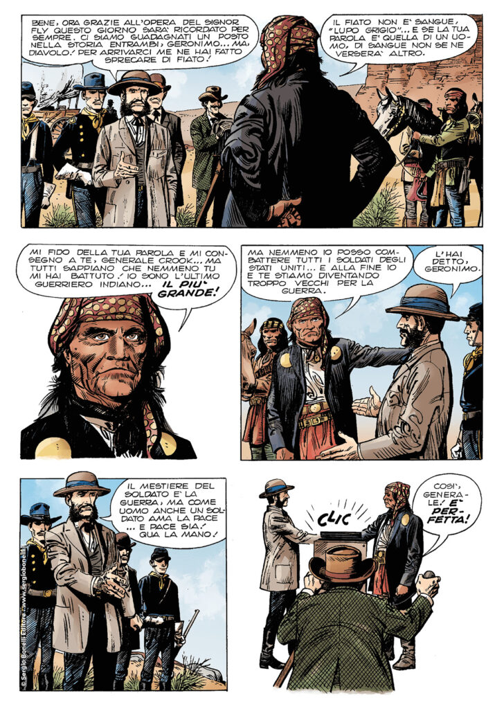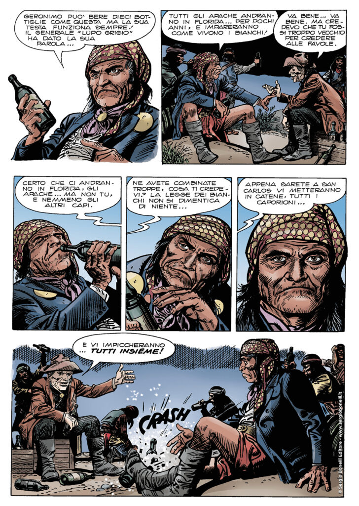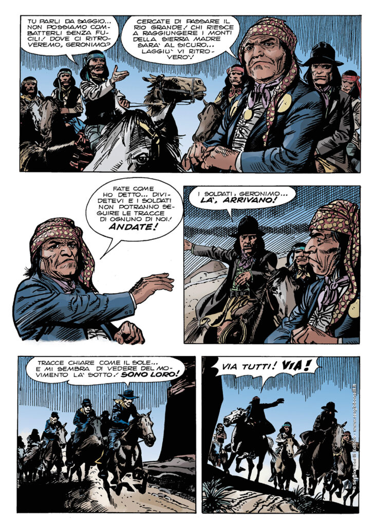 Continua lo shoppingSebbene invitto, Geronimo decide di fare accordi con i bianchi, si arrende, promettendo che la sua gente seppellirà l’ascia di guerra e si adatterà a raggiungere le riserve. Ma per i grandi speculatori e per i piccoli trafficanti la pace non è una buona cosa. Basta qualche bottiglia e altrettante parole infide per spingere Geronimo, convinto di essere caduto in una trappola, alla fuga. Sulla sua strada ritrova Pat MacDonald, i due si sono incontrati diverse volte, si rispettano ma non sono amici, eppure ancora una volta avranno molte cose da dirsi.