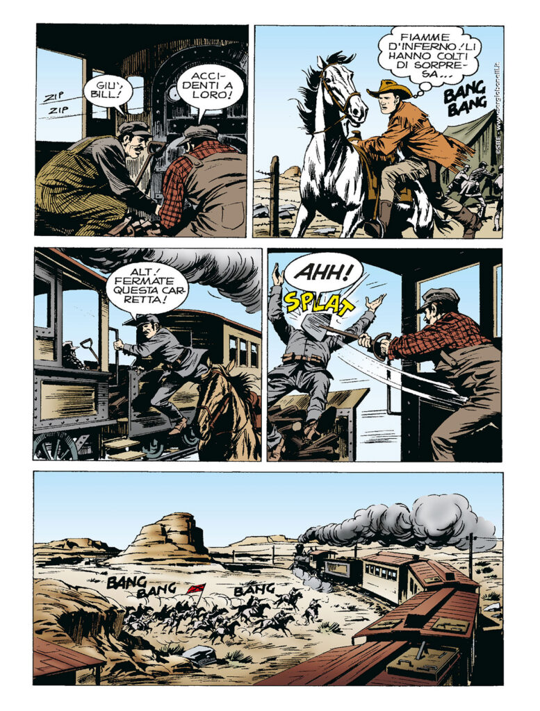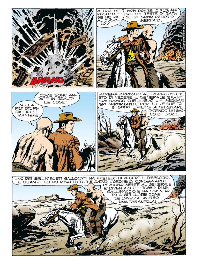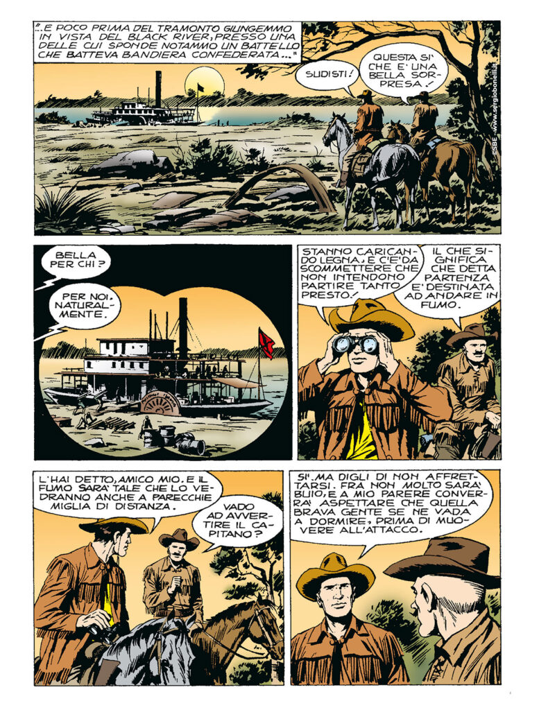 Continua lo shoppingTex racconta altri avvenimenti del suo passato, e questa volta si tratta di memorie della Guerra Civile. Tex e “Damned” Dick si arruolarono come esploratori civili nel 3° Cacciatori dell'esercito unionista: i due scatenati pards diventarono esperti in azioni di sabotaggio e guerriglia, allo scopo di tagliare ai sudisti rifornimenti di uomini e di armi. Grazie a loro, un battello pieno di munizioni saltò in aria, mentre un convoglio ferroviario carico di truppe in divisa grigia venne fatto deragliare a colpi di dinamite.