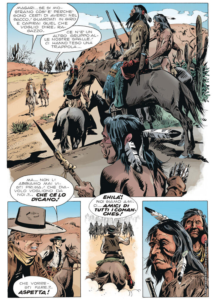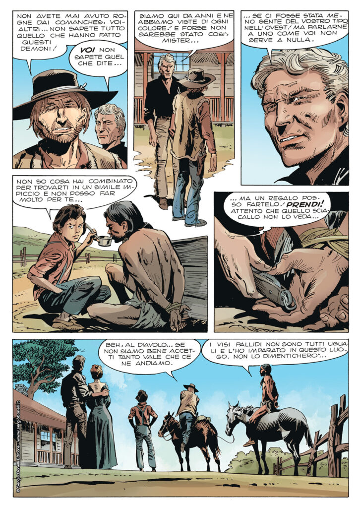 Continua lo shoppingIl vecchio Parker sente che i suoi giorni stanno per finire e chiede a Pat di rintracciare suo nipote, un mezzosangue cresciuto tra i Comanches. Pat non può rifiutarsi e, seppur brontolando, affronta la missione affiancato da Zacchini, un giovane artista che ha promesso a Brenda di proteggere il marito. I due non la vedono proprio nello stesso modo, soprattutto quando si tratta di bande di indiani inferociti o di cacciatori di scalpi dotati di una micidiale Gatling. Eppure qualcosa in comune la trovano, forse “perché la libertà e il sogno e l’avventura… sono dentro il cuore, come un fiore che mai può appassire”.