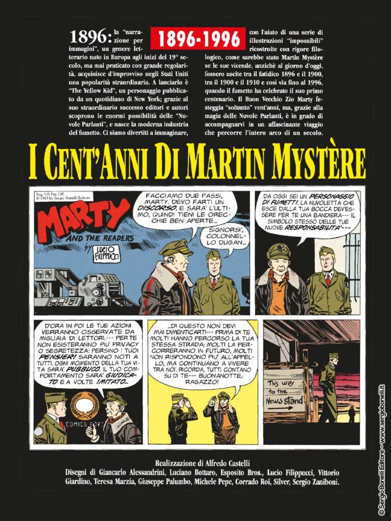 In appendice, un'ipotetica cronologia delle apparizioni di Martin Mystère lungo tutta la storia del fumetto, coadiuvata da illustrazioni di Lucio Filippucci, Corrado Roi, Michele Pepe, Vittorio Giardino, Giuseppe Palumbo, Luciano Bottaro, Silver, Sergio Zaniboni, Giancarlo Alessandrini, Esposito Bros e Teresa Marzia.