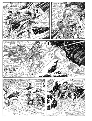 Un rito magico compiuto da quattro giovani stregoni, desiderosi di fermare la morsa di gelo che attanaglia le loro terre, porta altrettanti demoni, in grado di dominare gli elementi naturali – gelo, buio, vento, nebbia – a impossessarsi dei loro corpi. I quattro divengono così creature malvagie, che scatenano i loro poteri. Ma quando uno di loro si ribella, gli altri lo uccidono e cercano di sostituirlo con suo figlio, un ragazzino chiamato Neve d'Inverno, adottato da un trapper bianco dopo la morte del padre e della madre. Zagor deve salvare il bambino, sfuggendo alla caccia di esseri potentissimi che scatenano infernali tempeste contro di lui.