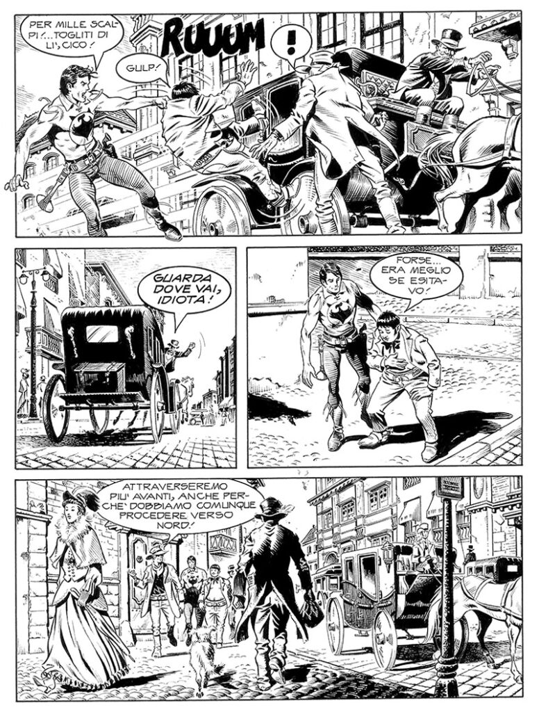 Zagor, Cico e l'equipaggio della chiatta "Rosebud" del comandante Carpenter discendono l'Hudson per raggiungere New York, alla ricerca di una bambina meticcia, figlia di una squaw e di un mercante bianco abituato a commerciare tra la Frontiera e la metropoli. Aray, la ragazzina, è stata rapita dalla gang di Mad Saddler, che domina la zona dei Five Points con ogni tipo di racket e di malaffare. La giungla di pietra della grande città si rivela cupa e pericolosa, e soltanto grazie all'aiuto di alcuni immigrati italiani, da tempo vessati dagli uomini di Saddler, lo Spirito con la Scure e i suoi amici potranno trarre in salvo la piccola Aray.