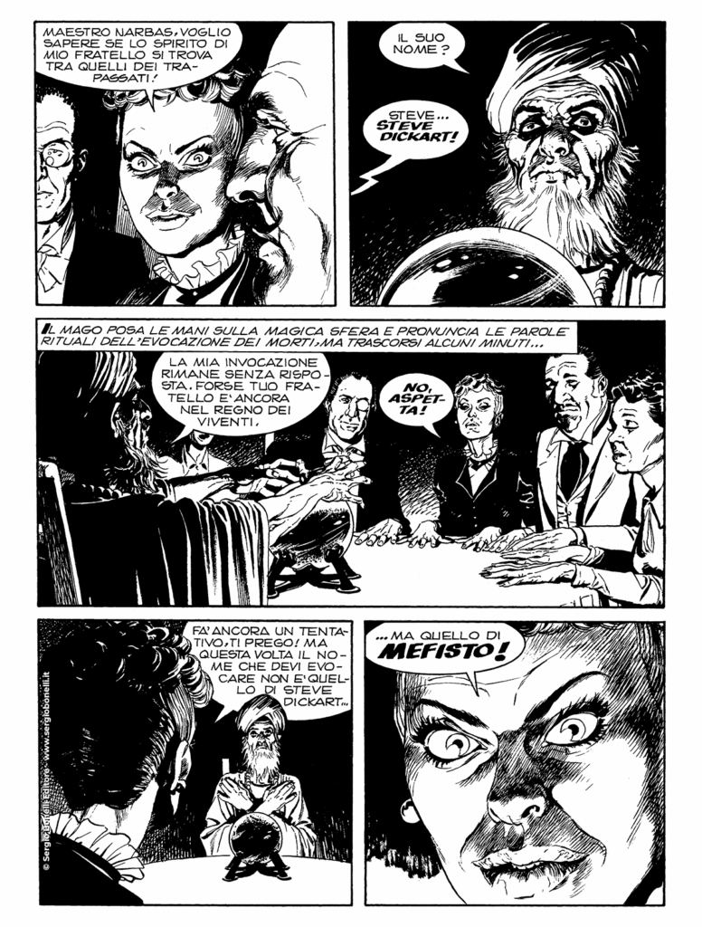 Continua lo shoppingStavolta, il pericolo per Tex e i suoi pards viene dalla Ville Lumiere, Parigi, teatro di ogni stravaganza e meraviglia. Una delle quali è Narbas, uno stregone indù in grado di favorire il ritorno, in spoglie terrene, degli spiriti perduti nei regni dell'ombra. Immaginate, dunque, quali potrebbero essere le conseguenze di un incontro tra Narbas e Lily Dickart, ora contessa Leonov. Avete indovinato: riportare fra noi suo fratello Mefisto, perché possa finalmente cogliere la tanto agognata vendetta. Il problema è che Narbas ha bisogno del cadavere del vecchio diavolaccio per strappare la sua anima all'Aldilà...… E l'unica persona che conosce l'accesso alle segrete del castello dove giacciono le ossa di Mefisto è la bella mambo Loa!
