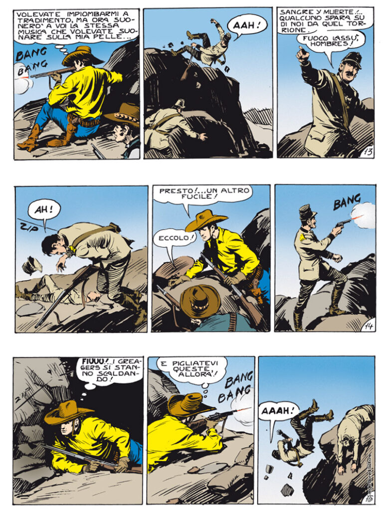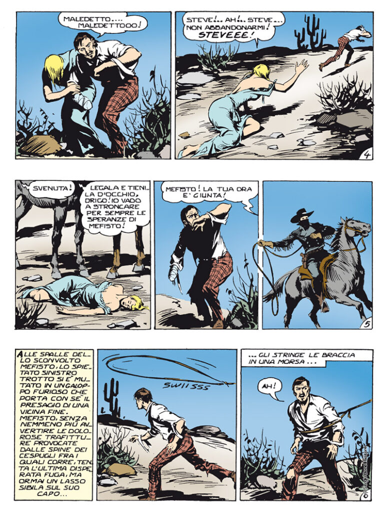 Continua lo shoppingLa caccia a Mefisto prosegue in pieno territorio messicano ed è qui che Tex stringe un legame d’amicizia destinato a durare una vita: l’incontro con Montales non è di quelli che si dimenticano. Il Ranger, ora tornato fuorilegge, si allea con il coraggioso ribelle, vestendosi di nero, indossando una bandana che gli cela il volto e divenendone un insospettabile sosia per seminare scompiglio tra le fila dell’esercito del Messico.
