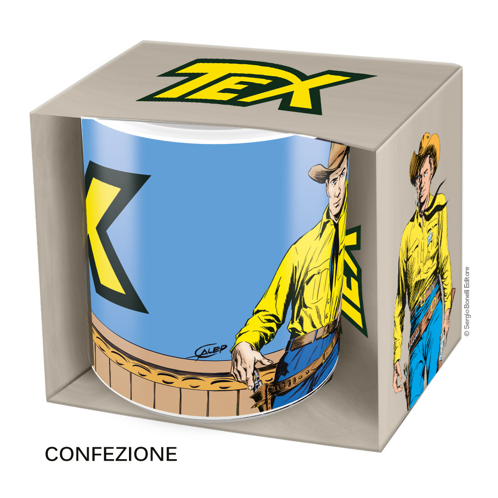 La tazza di Tex con il Ranger del Texas appoggiato al bancone di un saloon del West, in un'illustrazione di Galep!
