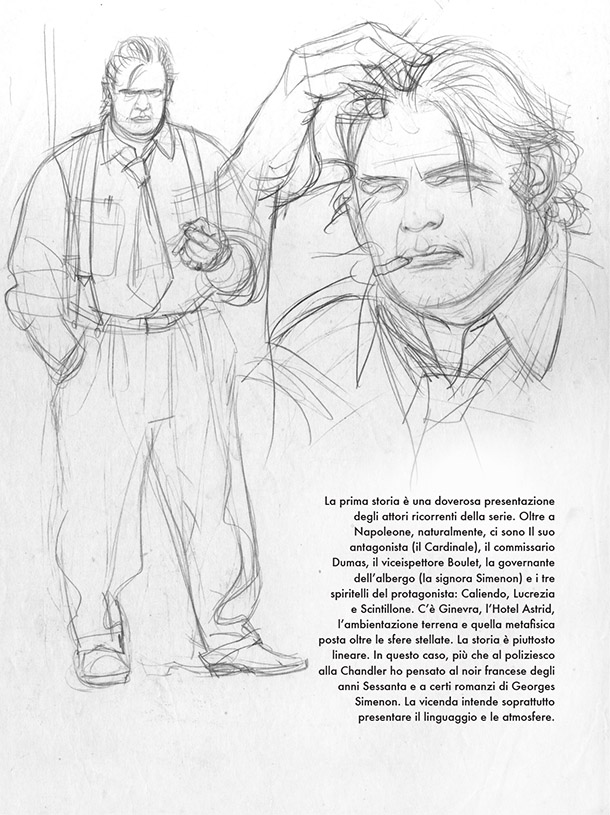 Continua lo shoppingCreato da Carlo Ambrosini, uno dei principali autori di casa Bonelli, Napoleone Di Carlo è un ex poliziotto italiano che lascia la natia Addis Abeba dopo la drammatica morte della sua famiglia e una cocente delusione professionale. Diventato albergatore a Ginevra, rimane spesso coinvolto, non di rado suo malgrado, in indagini di polizia. Napoleone vive una profonda anomalia: elementi psichici prodotti dalla sua fantasia e che lui solo vede animano le pagine del fumetto interagendo con la realtà del personaggio. Divise tra noir e quotidiano poetico, in questo volume sono raccolte tre delle principali avventure della serie, scelte tra quelle interamente realizzate dal suo creatore, sia nei testi che nei disegni. Il volume è arricchito da disegni e illustrazioni inedite e da un testo dello stesso Ambrosini che racconta il “suo” Napoleone.