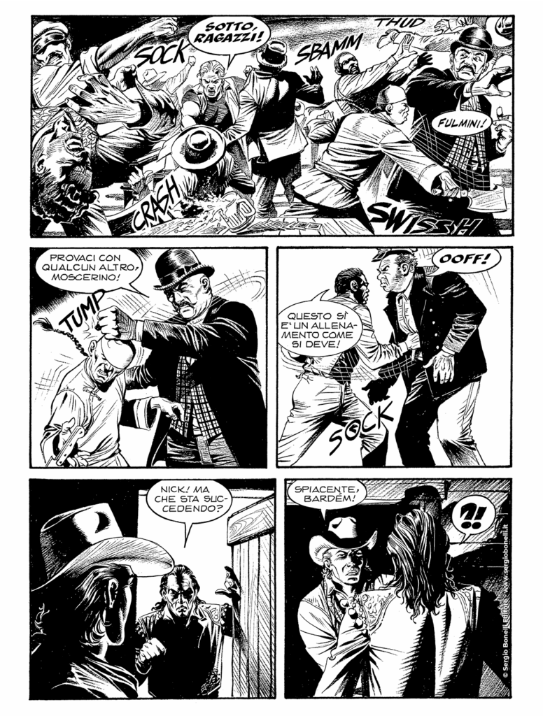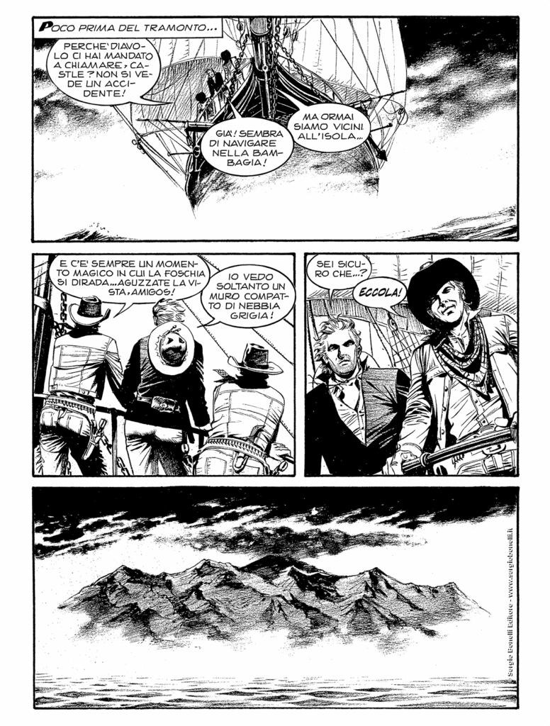 Continua lo shoppingPer affrontare le spie e i sicari di El Supremo, Tex chiede aiuto agli amici di San Francisco: il capo della polizia Tom Devlin, l’albergatore dell’”Alameda” ed ex-sbirro Mike Tracy e tutti i forzuti della palestra “Hercules”, capeggiati da Lefty Potrero, Bingo e Angelo. Il risultato: una girandola di colpi di scena, inseguimenti, pistolettate e botte da orbi per cercare di sventare il piano del pericoloso e ambiguo Nick Castle! Ma costui fugge in mare, diretto verso l’isola misteriosa, e solo due uomini coraggiosi, fingendosi soldati del Supremo, riescono a seguirlo...