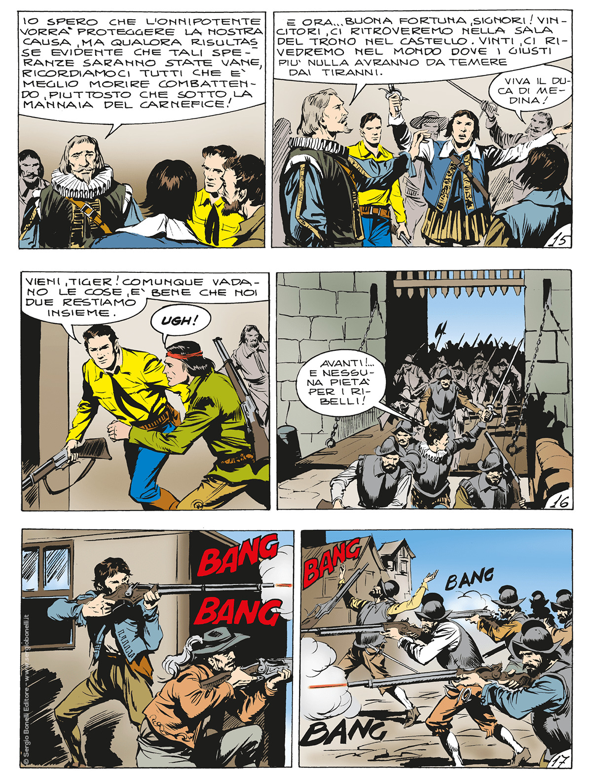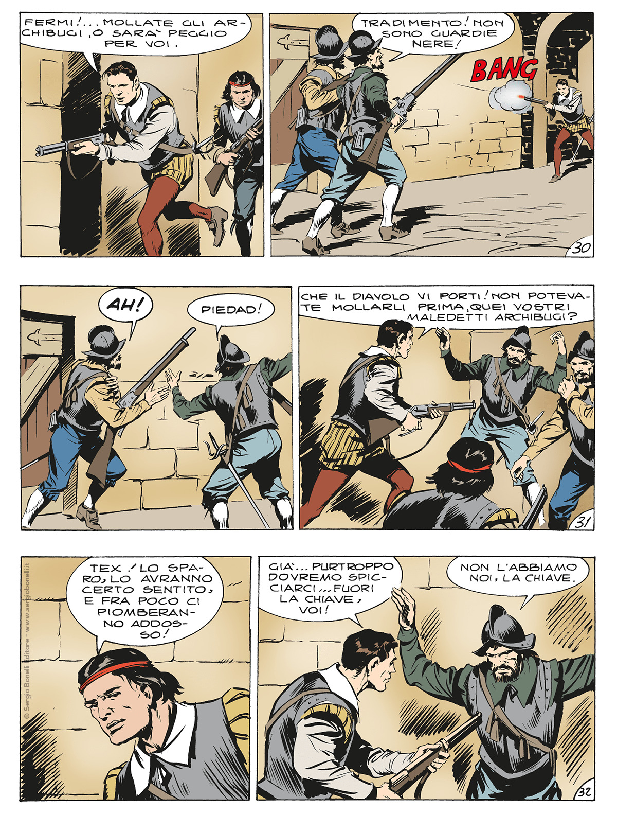 In una incredibile città d'oro scoperta da Tex e Tiger Jack nel mezzo del deserto e dove il tempo pare essersi fermato ai tempi dei primi conquistadores, i due pards si trovano a lottare al fianco di un manipolo di ribelli per liberare la popolazione dalla tirannia del Principe Nero, un malvagio usurpatore. Grazie a un ardito piano i nostri riescono a impadronirsi delle armi e delle munizioni custodite dei sotterranei della fortezza del nemico e con queste accendono la scintilla della rivolta. Lo scontro si rivela più duro del previsto ma, alla fine, i ribelli prevalgono sulla Guardia Nera del Principe che, però, conscio della sconfitta decide di vendicarsi e in un ultimo folle gesto fa crollare la diga adiacente alla città causandone la distruzione... Nell'episodio che segue, Tex, Kit e Carson si trovano a dare la caccia a Bill Cassidy, Red Curry e Sam Tracy, tre sanguinari banditi che hanno rapinato la banca di Yucca Flat seminando morte e devastazione...