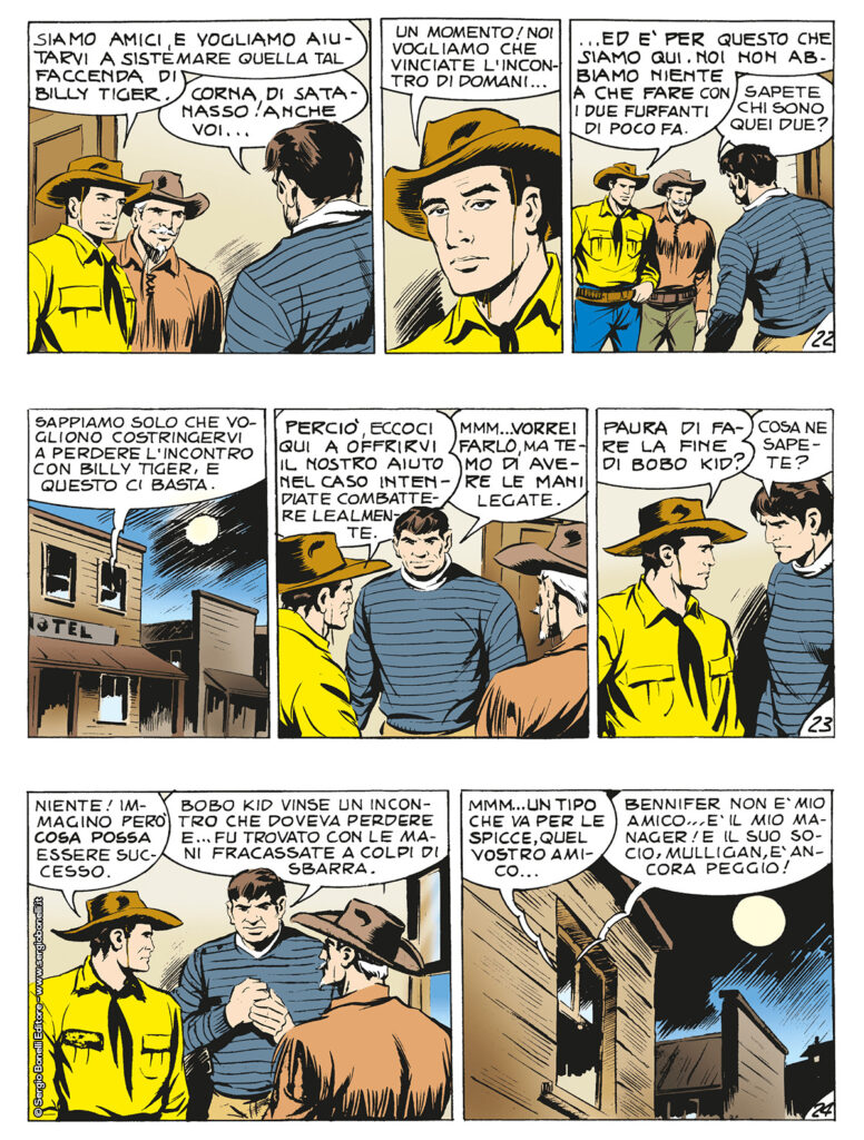 Dopo aver smascherato l’uomo dalle quattro dita, un diabolico furfante che, nascosto sotto mentite spoglie, si era impossessato del paese di Cedarville eliminando chiunque gli fosse d’ostacolo, Tex e Carson sono costretti a dividersi da Kit Willer e Tiger Jack. Mentre questi ultimi si recano all’annuale raduno delle tribù Navajos, i nostri rangers si gettano in una pericolosa caccia all’uomo per rintracciare a catturare Rufus Buck, un pericoloso tagliagole su cui pende una lauta taglia. Per rintracciare il bandito, che ha messo in piedi una banda con altre due anime nere sue pari, i nostri giungono nella città di Abilane dove informano della loro missione lo sceriffo locale. Ma prima che i due pard possano iniziare ad indagare, il destino mette sulla loro strada un singolare personaggio: un enorme pugile irlandese di nome Pat Mac Rayan che si trasforma in breve in un prezioso alleato…