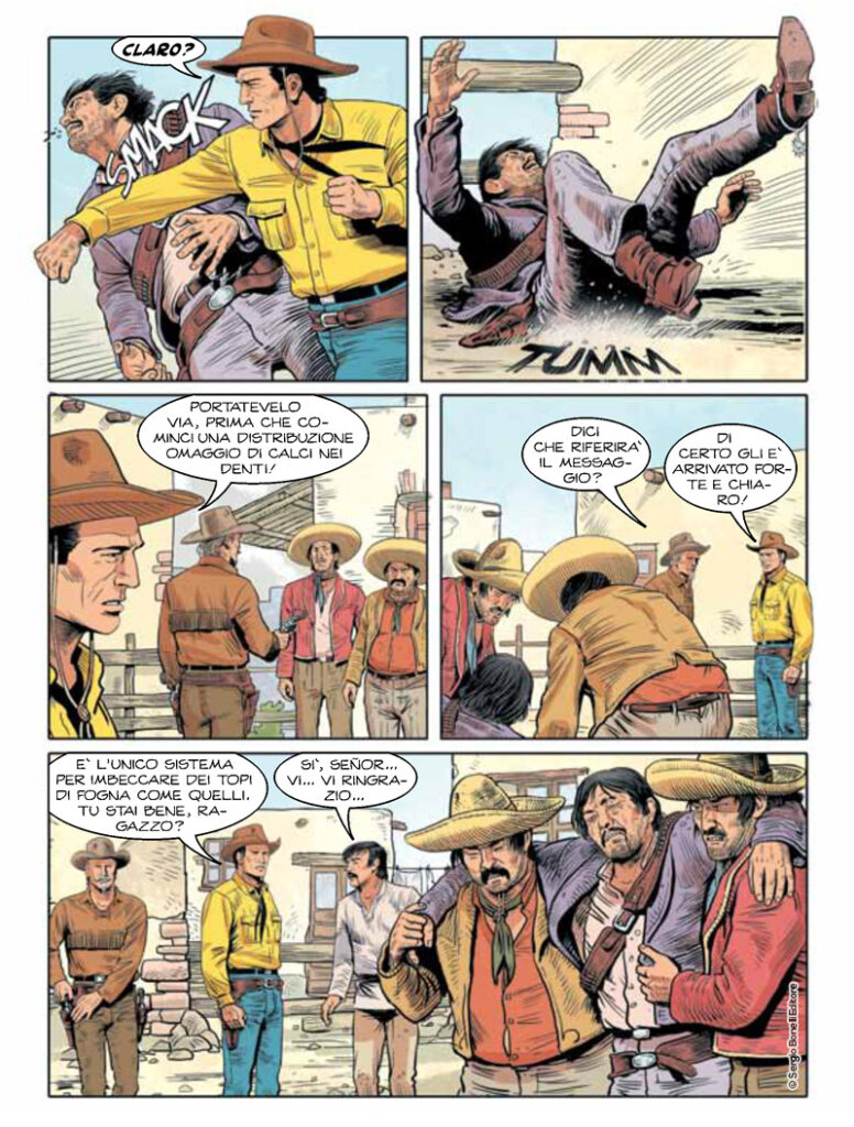 Prima di oltrepassare il Rio Grande con il bottino, Channing fa piazza pulita dei suoi complici grazie al suo braccio destro, lo spietato tiratore di precisione Krauser. In Messico, ad accoglierlo a braccia aperte, c’è il suo socio Malvado. I due spadroneggiano su una misera cittadina di contadini, costringendo i poveri peones a lavorare nella miniera d'oro nella quale hanno investito il frutto delle loro malefatte. Ma sulla loro pista ci sono Tex Willer e Kit Carson, pronti a trasformare l'oro insanguinato in piombo rovente!