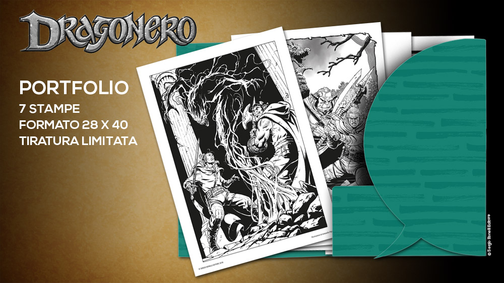Continua lo shoppingIl Portfolio dedicato a Dragonero presenta sette illustrazioni in bianco e nero dedicate al personaggio di Ian Aranill da Alfio Buscaglia, Giuseppe Matteoni, Manolo Morrone, Giancarlo Olivares, Gianluca Pagliarani e Antonella Platano.