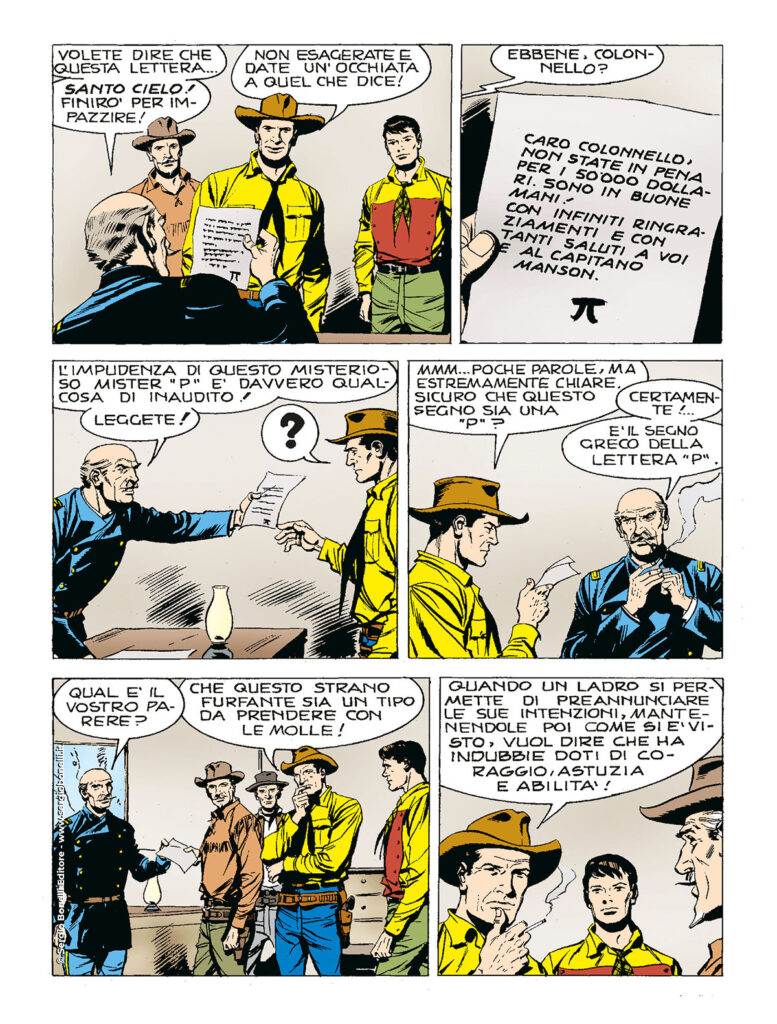 Continua lo shoppingLasciata Frisco, Tex e Carson si riuniscono a Kit e a Tiger Jack per dare la caccia all'inafferrabile gaglioffo che ha rapinato cinquantamila dollari destinati a Fort Whipple, lasciando come firma una "P" greca vergata su un irridente messaggio. È Proteus, il bandito dai mille volti!