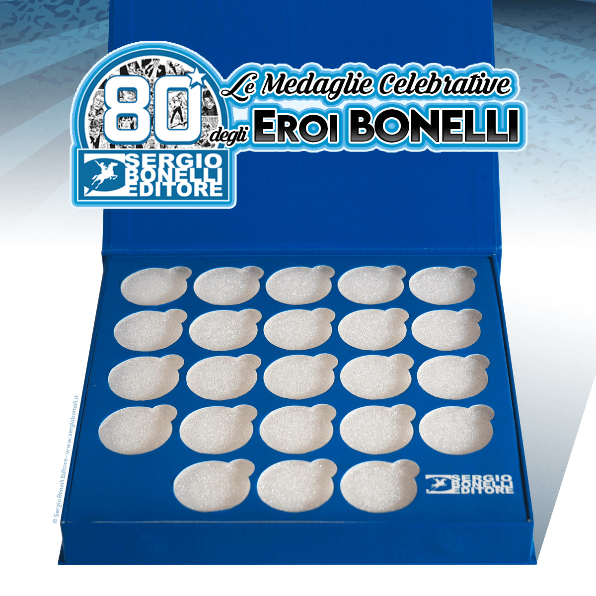 Nei mesi di aprile e maggio 2021, la nostra Casa editrice festeggia gli ottant'anni di attività, e lo fa allegando agli albi delle medaglie celebrative che riproducono i volti di alcuni dei grandi Eroi che hanno fatto la storia dell'Avventura Bonelliana.