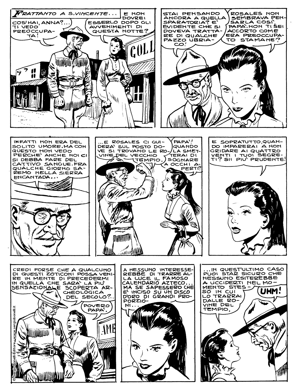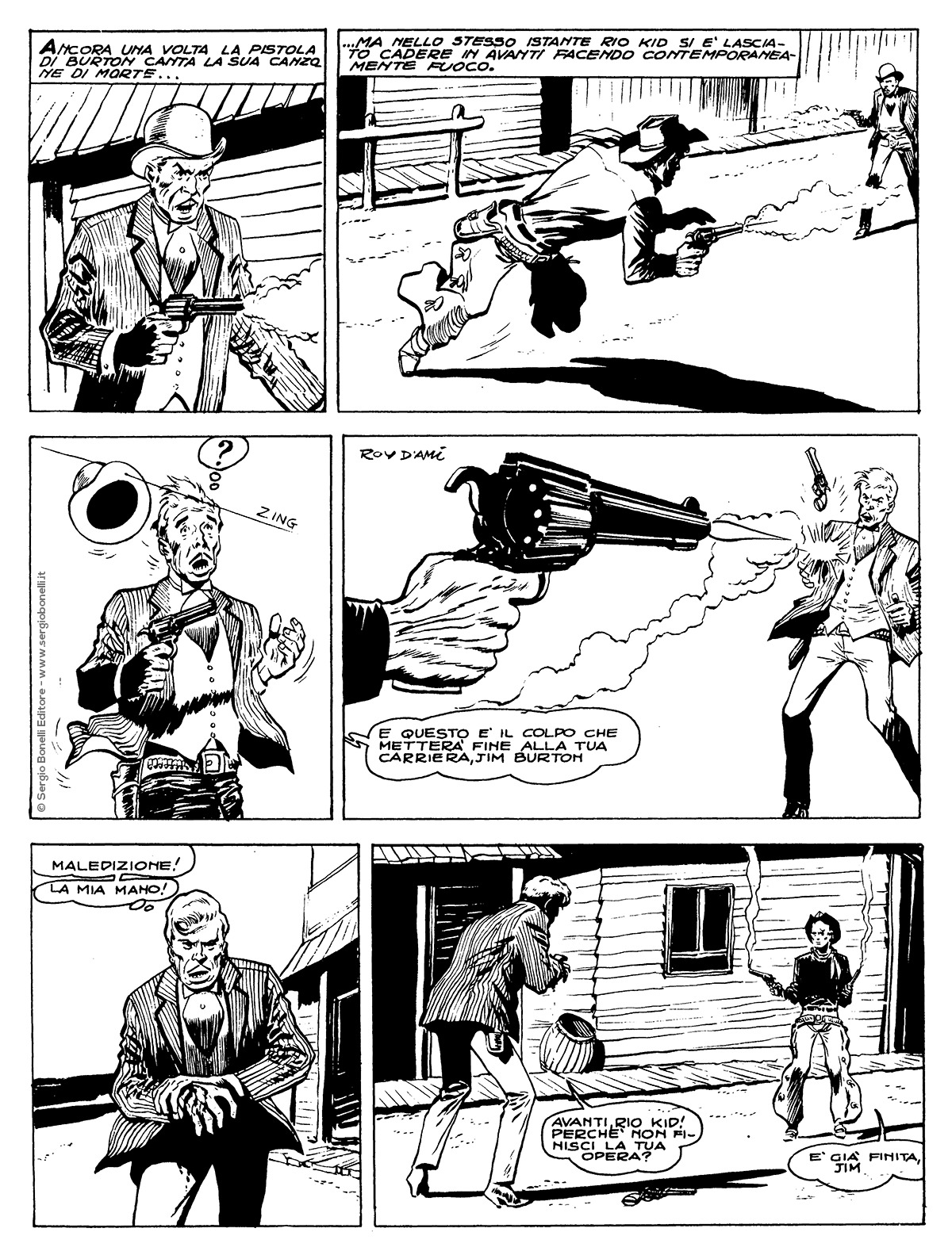 Continua lo shoppingIl professor Dayton, insieme alla giovane Anna, si avventura tra i monti Chisos alla ricerca di un antico, manufatto azteco. Guidato solo da curiosità scientifica, è insensibile alla seduzione dell'oro da cui quel reperto è composto... Ma per la sua sedicente guida - il viscido Benito Rosales, non a caso chiamato "El Escòrpion" - le cose non stanno affatto così! L'anziano archeologo e la figlia rischiano il peggio, destino a cui solo uno spavaldo pistolero biondo potrà sottrarli... Tutti lo conoscono come Rio Kid, un nome che, per tagliagole e manigoldi, è sinonimo di rapida sepoltura!