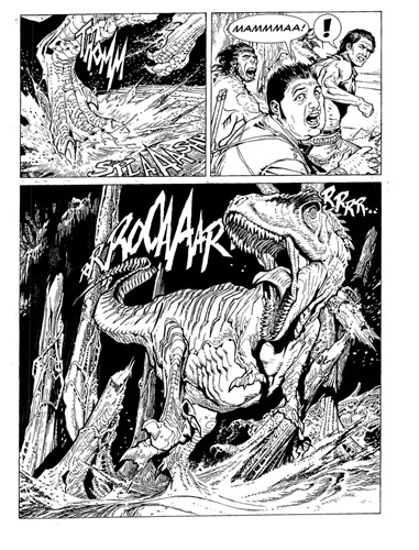 La vetta dell’altopiano perduto è un selvaggio ecosistema che conserva intatti e viventi i relitti della preistoria. Zagor, Cico e i loro compagni si trovano davanti due tribù di cavernicoli in lotta tra loro e a una variegata serie di dinosauri sempre più giganteschi e terribili. I primitivi Detak sono amichevoli, anche perché guidati da due vecchi amici dei nostri eroi, ma i loro avversari sono feroci cannibali che vogliono offrire in sacrificio Akawe e Rulfo al loro dio vivente, uno spaventoso dinosauro cornuto! Per salvarli, Zagor dovrà affrontare l’enorme mostro con il solo ausilio della sua scure... pur sapendo che, anche in caso di vittoria, non avranno alcuna possibilità di fuga dalla sommità del Grande Tepui...