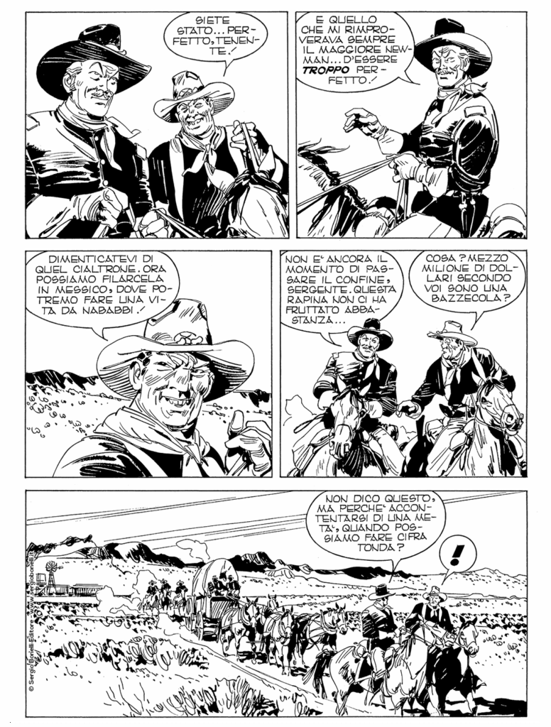 Continua lo shoppingIl Tenente Stuart Bigelow, espulso dall'esercito, si vendica mettendo insieme una banda di ex-soldati e rapinando il treno delle paghe militari. Il colpo va a segno senza alcuno spargimento di sangue, perché Bigelow ha un suo codice d'onore e ci tiene ad apparire come un ufficiale impeccabile, considerandosi ingiustamente allontanato e intendendo suscitare clamore con il suo caso. I militari riescono a tenere nascosta la notizia e incaricano Tex e Carson di braccare l'ex-ufficiale. I pards si mettono subito sulle sue tracce per cercare di far venire a galla la verità...