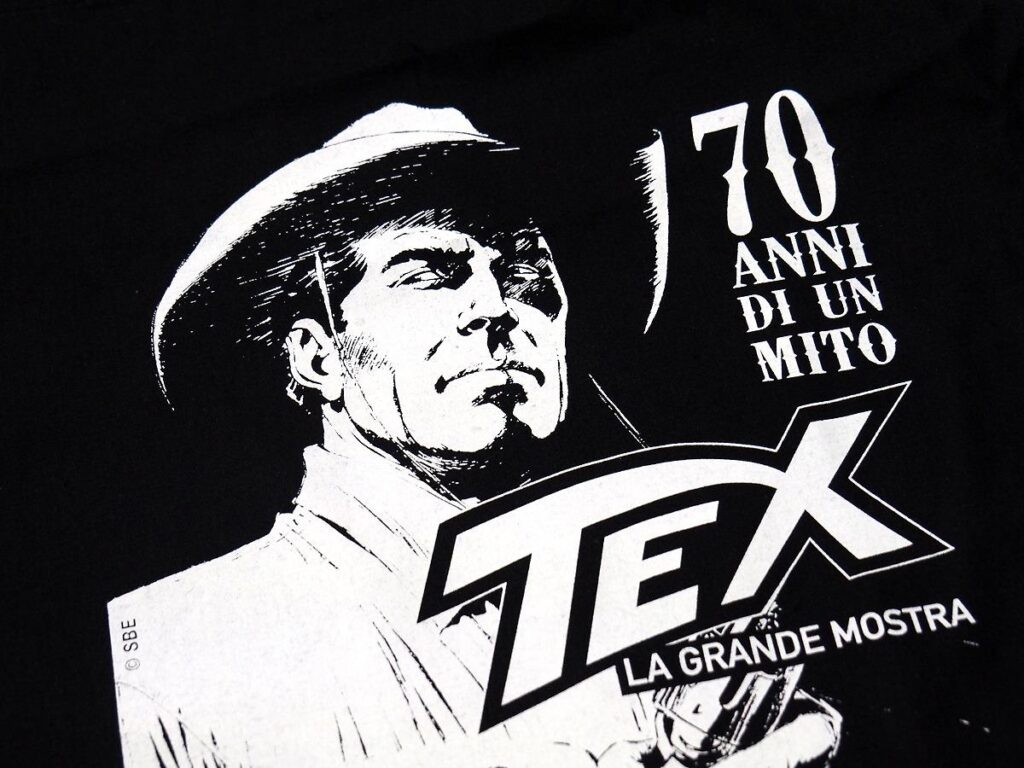 Una borsa nera di cotone che riproduce su un lato la stampa del poster della Grande Mostra "Tex 70 anni di un mito", da un disegno di Claudio Villa.