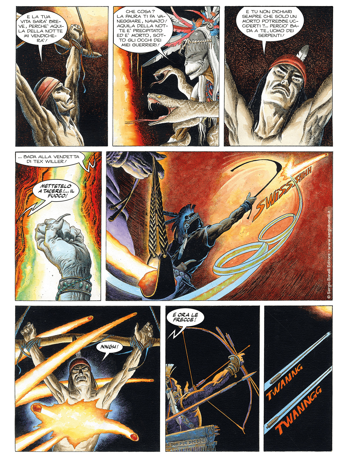 Continua lo shoppingSulla tribù di Tex incombe una minaccia mortale. Un acerrimo nemico dei Navajos ha giurato di sterminarli. E quando Tex, travolto da una frana, cade in un abisso, solo suo figlio Kit e Tiger rimangono ad affrontare il terribile sciamano Snakeman!