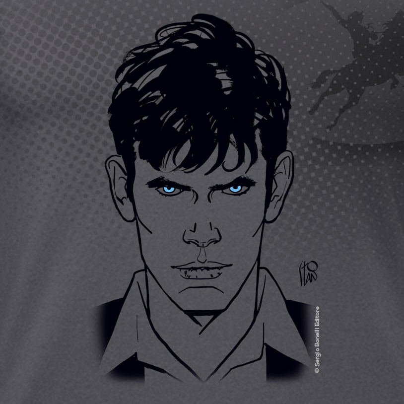 L'inconfondibile volto di Dylan Dog visualizzato da Angelo Stano, su di un'elegante t-shirt grigia dal taglio femminile!