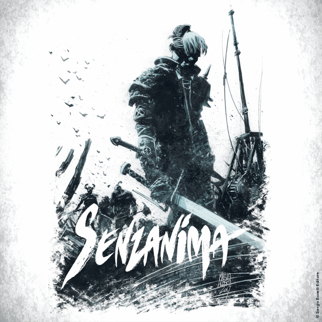 Continua lo shoppingUna t-shirt bianca, dal taglio unisex, che riproduce l'illustrazione realizzata da Mario Alberti per la copertina del primo volume di Senzanima, la serie che racconta le dure avventure giovanili di Ian Aranill prima che diventasse Dragonero.