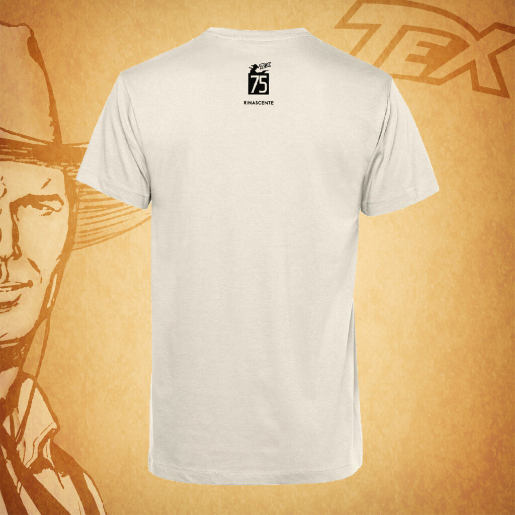 Continua lo shoppingUna t-shirt di colore bianco che riproduce la copertina disegnata da Aurelio Galleppini per il primo numero di Tex libretto, "La mano rossa", realizzata da Rinascente in occasione della Tex Week allestita presso Rinascente Milano Piazza Duomo.