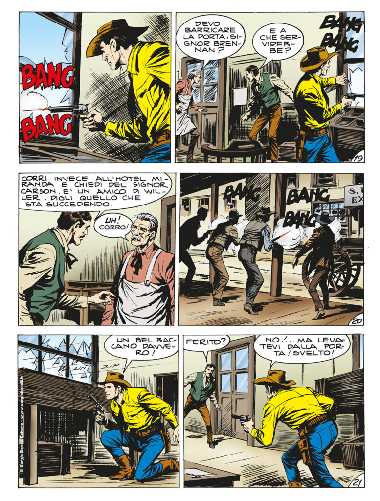 Continua lo shoppingDal comando giunge un nuovo incarico: “El Rey” sta mettendo a soqquadro la Sonora… Tex e Carson, prima ancora di giungere a Hermosillo, loro destinazione, hanno un lungo scontro a fuoco con alcune bande di pericolosi guerriglieri al soldo del feroce bandito!