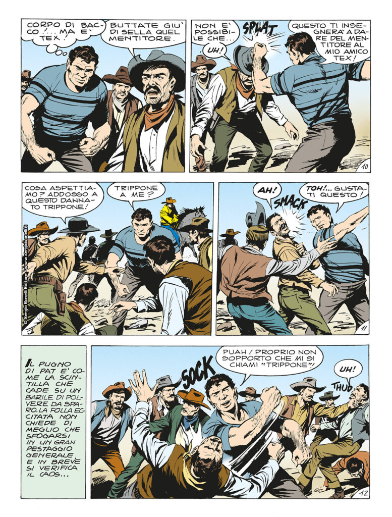 Continua lo shoppingL’arrivo di Tex con i soldi delle paghe blocca sul nascere una rivolta ai cantieri della Southern grazie anche all’aiuto dell’irlandese Pat, che ritrova tra i lavoranti. Scampati ad un agguato ordito da Jeff Colter, i due pards si gettano al suo inseguimento, decisi a scoprire i veri mandanti dei sabotaggi.
