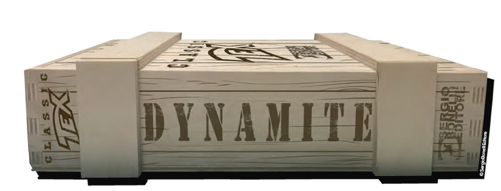 Continua lo shoppingTex Dynamite propone, in una confezione di legno che ricorda una piccola cassa di dinamite, quattro versioni del primo albo della collana Tex Classics: una "regular" e tre con copertina variant (vintage, argentata - con elementi in rilievo, e "Mano rossa" - soft-touch e con elementi lucidi).