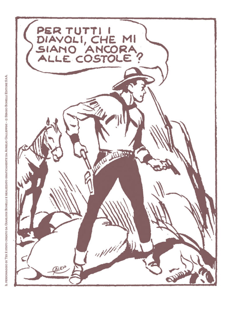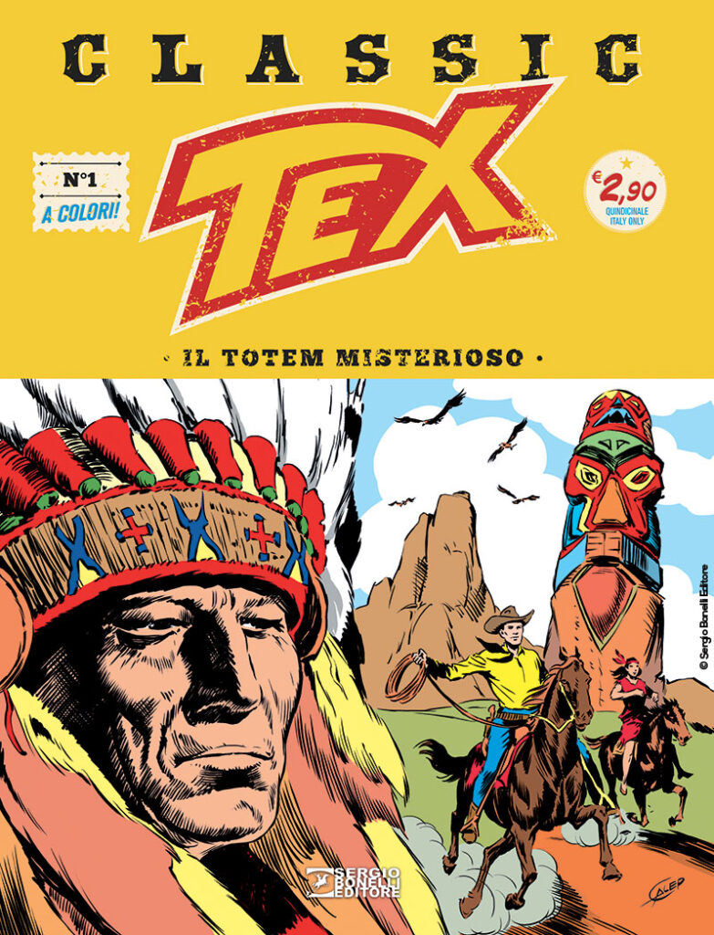In più, la riproduzione anastatica del primo albo a strisce di Tex ("Il totem misterioso", datato 30 settembre 1948), l’inedita riproposizione nel formato a striscia di una breve storia di Tex del 1951 ("La banda del campesino"), firmata Bonelli e Galleppini, oltre a una stampa su carta di pregio e in grande formato della prima vignetta di Tex disegnata da Galep!