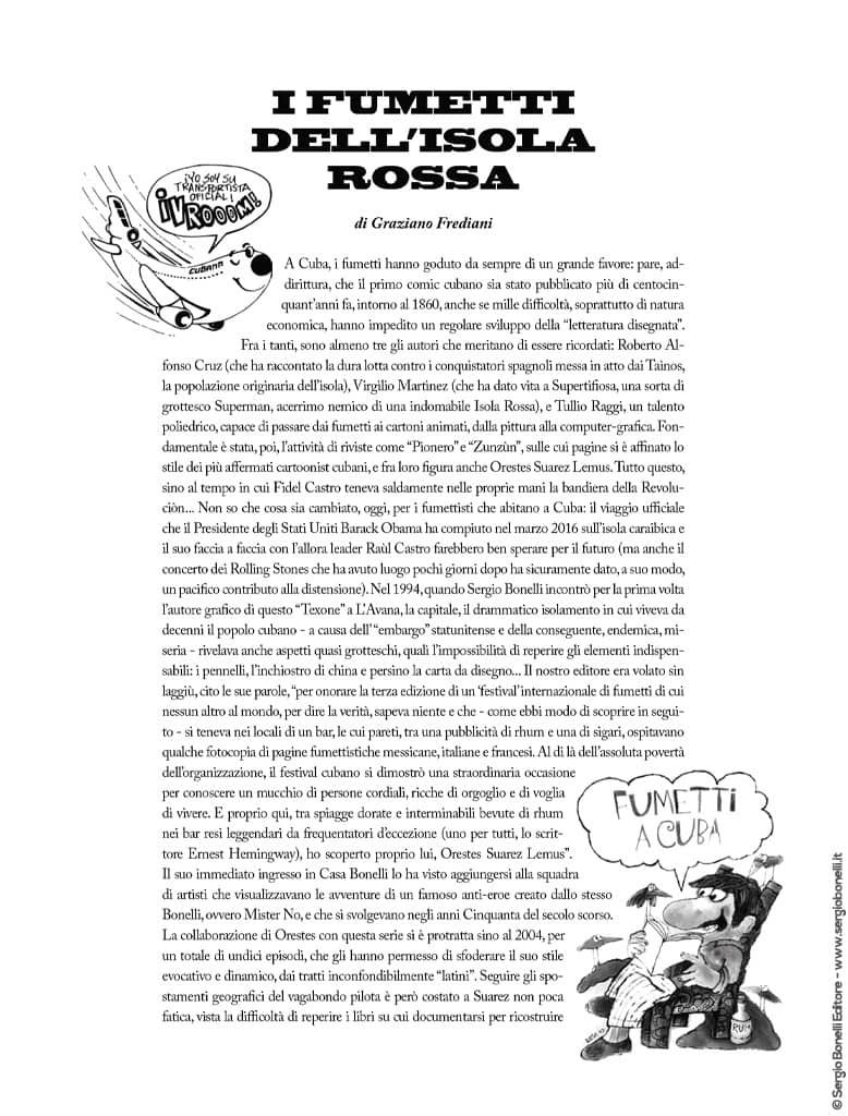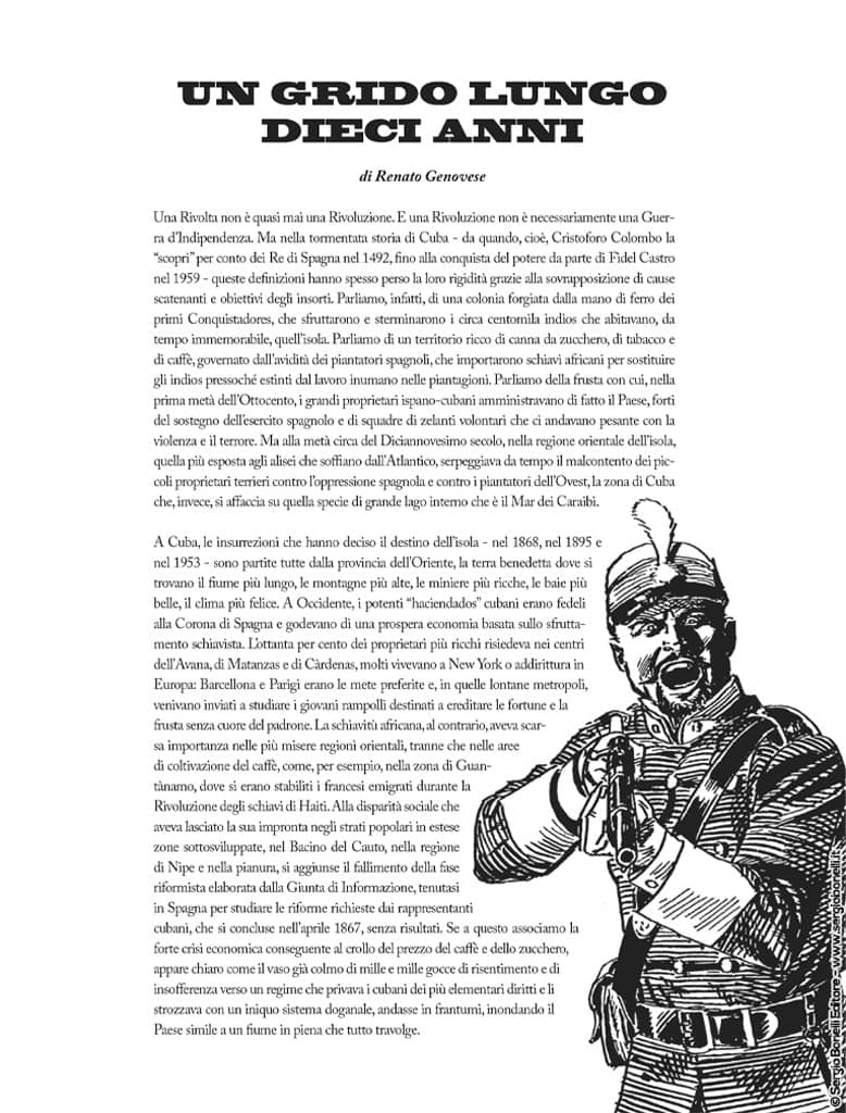 Come dimostrano le sue meravigliose tavole, l’artista cubano Orestes Suarez ha particolarmente sentito quest’epica e avventurosa storia di rivoluzione e di magia, ambientata nella sua romantica isola durante la prima, sfortunata guerra d’indipendenza detta dei “dieci anni”. Da un soggetto di Guido Nolitta, alias Sergio Bonelli, la sceneggiatura è firmata da Mauro Boselli.
