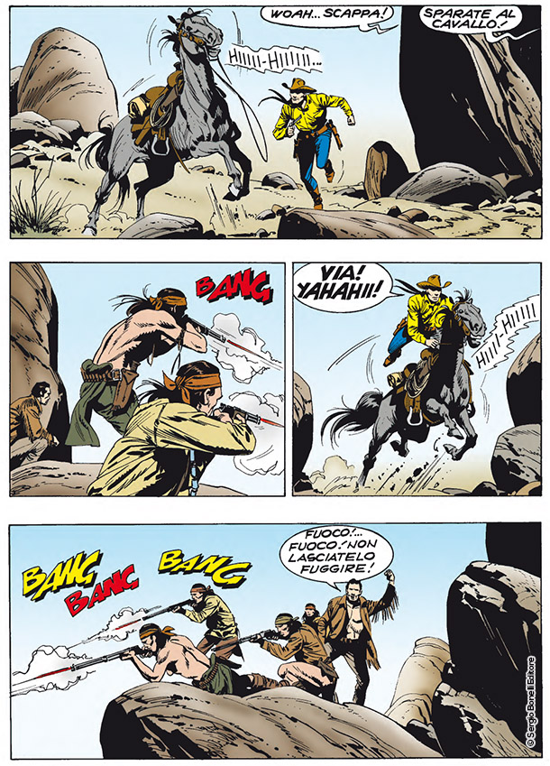 Continua lo shoppingSulle tracce di una gang di trafficanti d'armi, Tex capita nella cittadina di Goldena, dove raddrizza la schiena a Fraser, un baro che viene scacciato a frustate dalla città. L'uomo giura vendetta e scatena i sanguinari Apaches di Wa-Ha-Tah contro l'inerme popolazione di Goldena. Scoperto il massacro i pards, spalleggiati dalla Cavalleria, non daranno requie agli infami assassini!