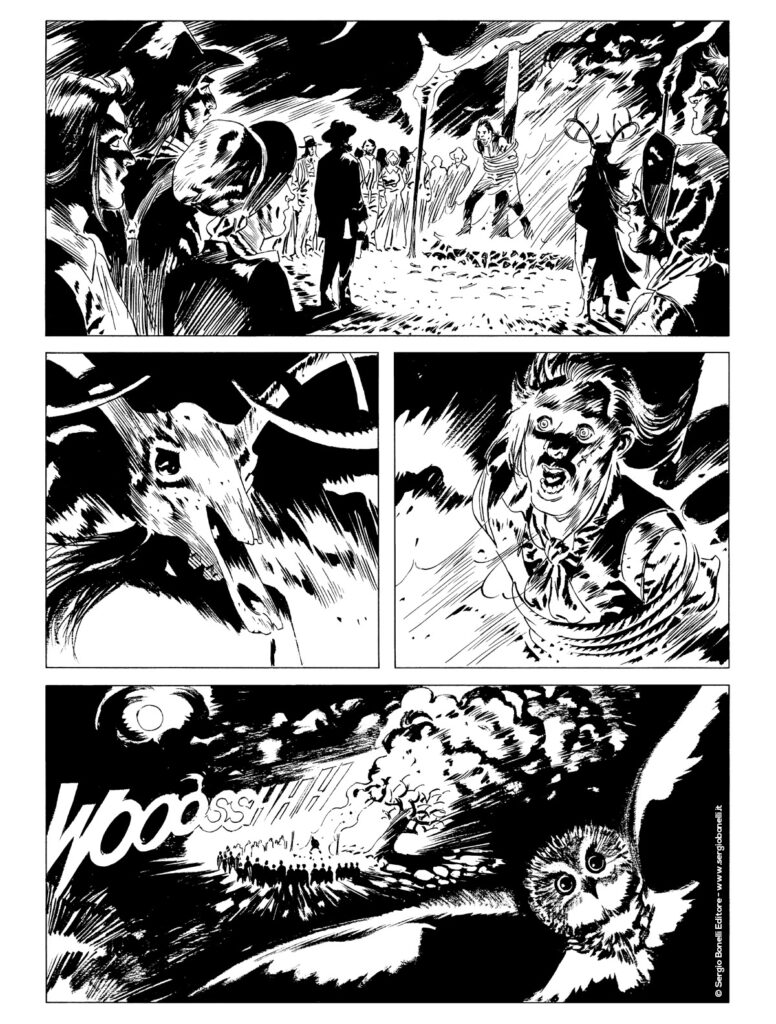 Orribili sacrifici umani vengono compiuti Redfield nel Nebraska... Per ingraziarsi antiche divinità celtiche e avere raccolti fertili, cittadini e fattori si sono trasformati in invasati al servizio del potente Kasdan e di una misteriosa strega… Tex Willer, sulle tracce di un bandito in fuga, è costretto a fermarsi a Redfield, il villaggio dei folli...